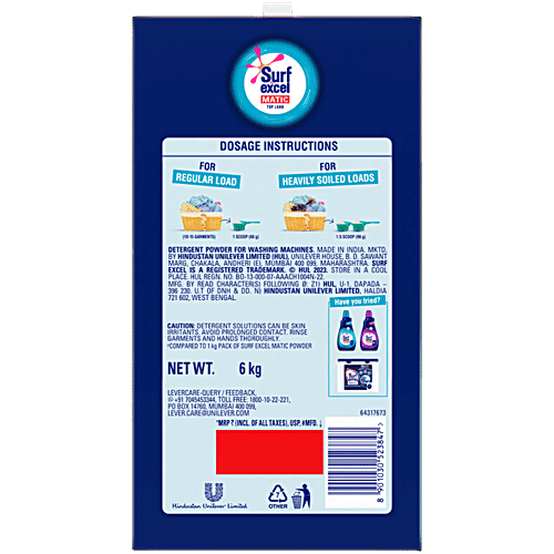 Surf Excel Matic Top Load Detergent Powder, 6 kg