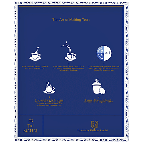 50 Glorious Years of Excellence. When the history of tea is written down, 1966 will be a celebrated chapter. For in that year, Brooke Bond Taj Mahal Tea was born with a promise - to foster excellence in each cup. Fifty years on, we have not forgotten that promise. Ordinary teas usually provide either strength or just flavour. However, only Brooke Bond Taj Mahal Tea contains the precious essence of the finest fresh tea leaves, giving you the perfect balance of strength and flavour. A flavour which can only be matched by the exquisite melodies composed by the maestros who have been our ambassadors over the decades. Rigour in selection and blending: the tea from every tea estate has its own taste - because of its terroir, pluck, and flush. How then do we turn it all into the unique Taj experience for our customers - year after year? Enter our master tasters and blenders and their traditions built over many years. It takes millions of tastings and years of experience to be a taster for Taj Mahal Tea. The brew is golden orange in colour, has a rich taste, and an uplifting aroma. So go ahead, savour the flavour of this historic blend and enjoy the perfect taste of this priceless cup of tea and exclaim- Wah Taj
