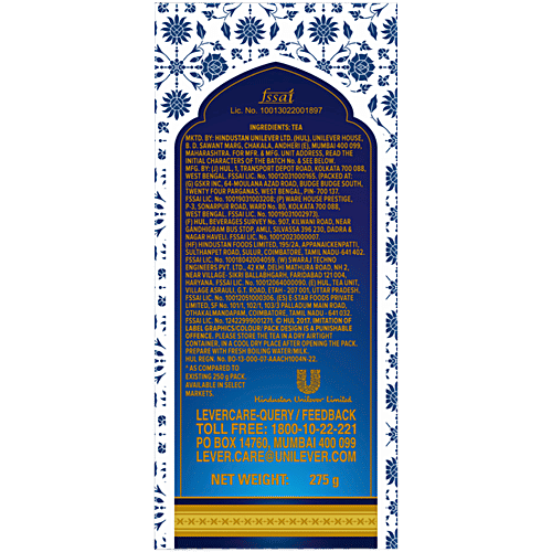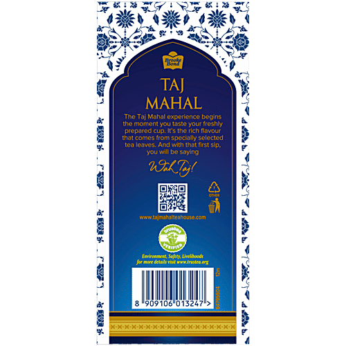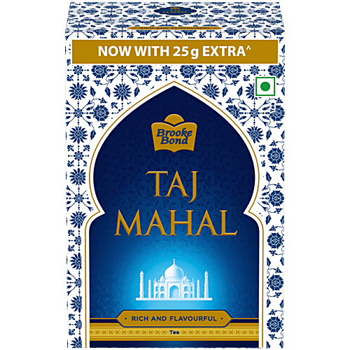Over 50 Glorious years of Excellence. When the history of tea is written down, 1966 will be a celebrated chapter. For in that year, Brooke Bond Taj Mahal Tea was born with a promise - To foster excellence in each teacup. Fifty years on, we have not forgotten that promise. As an age-old brand, we have built the credential of Great Tasting Tea by focusing on our consistently superior quality. Every Taj Mahal cup is created by tea tasters who approve the blend by tasting 1000s of teas, then graded and blended to perfection. The brew is golden orange in colour, has a rich taste, and an uplifting aroma. The Taj Mahal experience begins the moment you taste your freshly prepared teacup. Enjoy your time in solitude, relax, reflect, and indulge by savouring the flavour of this historic blend. Feel the aroma engulf you when you bring the teacup close, and with that first sip, you will be saying WAH TAJ! Taj Mahal Tea, true to its promise of serving great tasting teas, has a range of premium handcrafted teas like black tea, green tea, white tea, and Gourmet milk tea (masala chai). Taj Mahal Gourmet Tea has an elaborated take on tea (Chai) concoctions with each flavour in the collection handcrafted by infusing exotic Indian ingredients with tea leaves. Some of these speciality teas are Royal Saffron, Bold Spice, and Darjeeling 2nd flush teas, and are available. Features