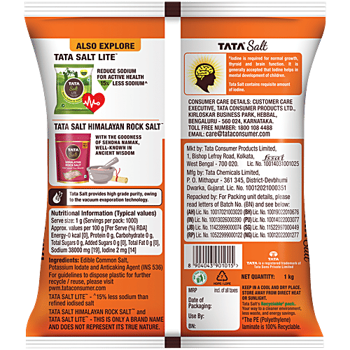 Desh ki Sehat Desh ka Namak! Now celebrating 40 years of trust, Tata Salt has pioneered Indias largest vacuum evaporation technology. Untouched by hand, Tata Salt offers an assurance of iodine. With vacuum evaporation technology, Tata namak offers a hygienic alternative to your regular table salt. It contains the requisite amount of iodine, which is an essential dietary nutrient
