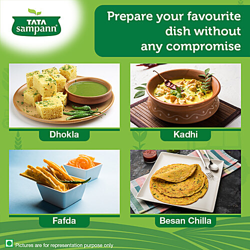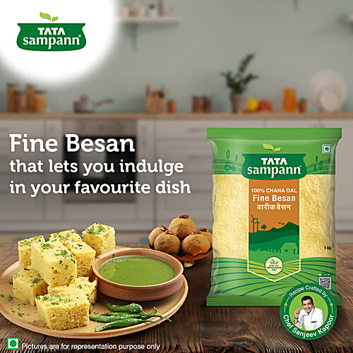 Tata Sampann Fine Besan made from 100% unpolished chana dal is all you need in the kitchen to enjoy an all-natural authentic taste in all your favourite recipes. It lets you indulge in dishes like besan ladoo, dhokla, kadhi, fafda, sev, and other namkeens. Recommended by Sanjeev Kapoor, Tata Sampann Besan undergoes a 5-step purity process to ensure that besan in every packet you buy is uniform and of premium quality. Start with Goodness!