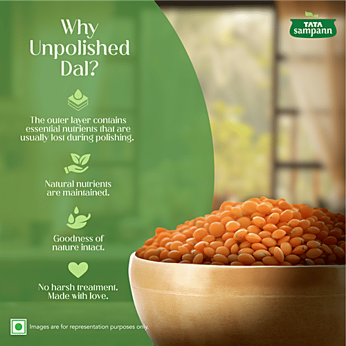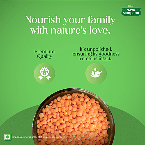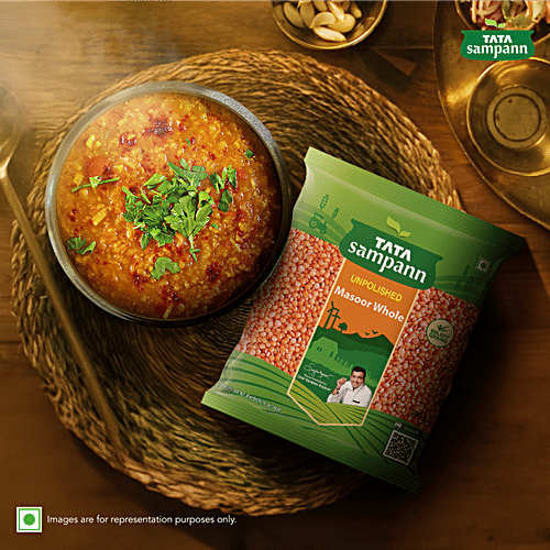 For most Indians, comfort food is always linked to easy-to-cook homemade meals, and what can be more convenient and quicker than preparing a hearty dal meal? Essential in every household, Tata Sampann dals are unpolished and do not undergo any artificial polishing with water, oil, or leather, thereby retaining their goodness and wholesome character. The 5-step process ensures that Tata Sampann grains are uniform and of premium quality, giving you an all-natural, authentic taste. A staple in the Indian diet, Masoor Dal provides nutrients such as protein and fibre. Made of select grains and recommended by Chef Sanjeev Kapoor and Chef Ranveer Brar, Tata Sampann Unpolished Masoor Dal makes for a delicious meal choice. So, whenever you are in the mood to cook something easy and delicious, dive into the scrumptious taste of Tata Sampann pulses and enjoy a lovely meal! Explore Tata Sampann Pulses range - Toor dal, Chana dal, Moong dal, Moong dal Chilka, Green Moong, Masoor Small dal, Kabuli Chana, Masoor dal, Kali Masoor dal, Urad dal, Urad Whole dal, Urad Kali, Kala Chana, and Rajma.