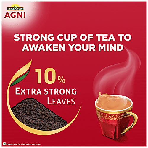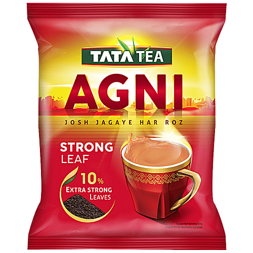 Why Tata Tea Agni? The second-largest brand in the Tata Tea portfolio with a presence across 22 states, Tata Tea Agni offers a strong cup of tea at an affordable price, energizing them to overcome any challenges along the way. What makes it unique? Make your mornings more energetic with Tata Tea Agni's10% extra strong leaves that give a strong taste in every cup. With a special blend of tea leaves, Tata Tea Agni strong leaf offers just the perfect freshness & rich fullness that will leave you longing for more with every sip. When to enjoy a fresh cup of tea? Enjoy it whenever you long for a strong cup of tea to awaken your mind and get rejuvenated.