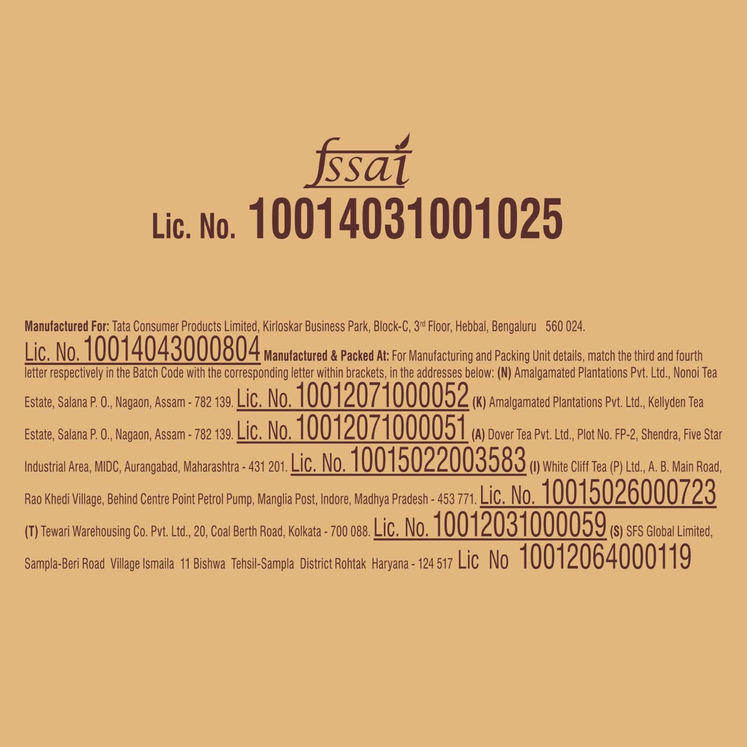 Exquisite Tea Leaves: Made by blending 15% gently rolled aromatic long leaves with 85% Assam CTC tea leaves Caffeine Content: Medium Caffeine; Material Features: Vegetarian; Ingredients: A Fine Blend Of Assam Ctc Teas With 15% Long Leaves Rich Taste & Irresistible Aroma: Enjoy the superior balance of rich taste and irresistible aroma with Tata Tea Gold Quality Standards: Premium quality tea, selected and blended by Tata Tea experts Savor Every Moment: Perfect cup of chai to delight you & your loved ones at any time of the day Commonly Searched Topics: tea 1 kg, tea in pantry, chai patti, masala tea, chai, tea leaves, strong tea, Tata tea, Tata tea gold, Tata tea premium, tea powder, tea, Tata tea premium 1kg pack, black tea, Darjeeling tea, chai tea