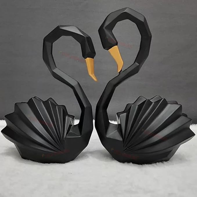 TIED RIBBONS Romantic Love Swan Pair Statue Duck Couple Decorative Showpieces Statue for Home Decor Living Room Decoration Gift Item (Black and Gold) - Birthday Wedding Gifts