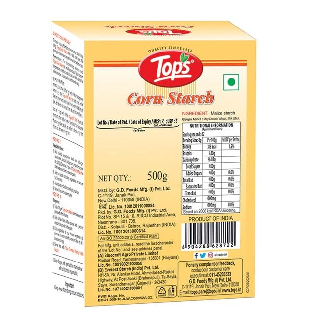 TOPS Corn Starch - 500g. Mono Carton