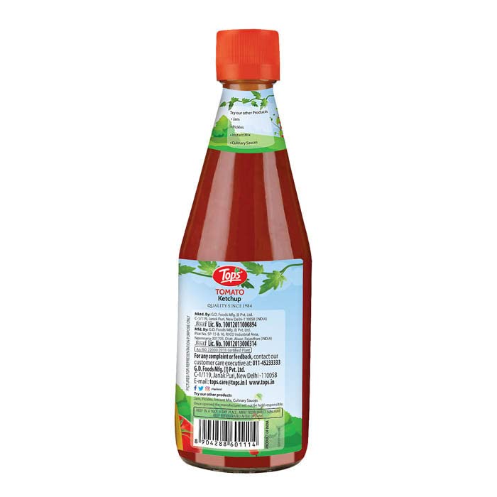TOPS Tomato Ketchup - 500 gm Glass Bottle |Made with the goodness of juicy hand-picked tomatoes|No Added Colour & Flavour.