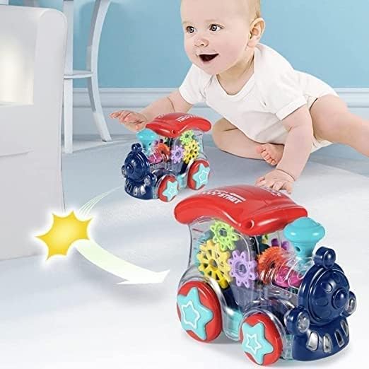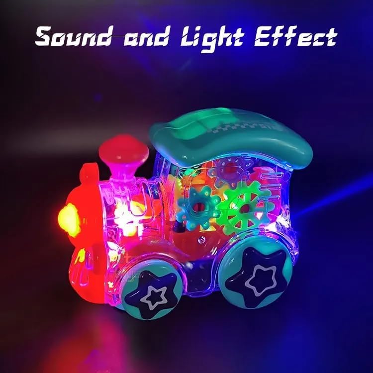 Trek Toys World Large Transparent Musical Train Toy with 360-Degree Rotation – Bump & Go Gear Mechanism with Light and Sound Effects (Multicolor)