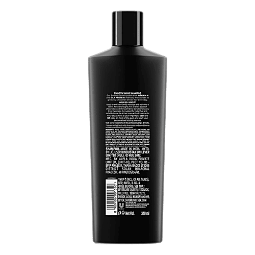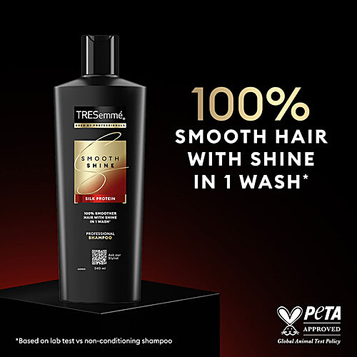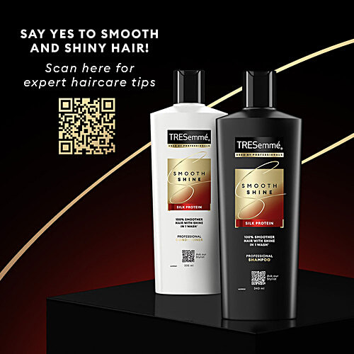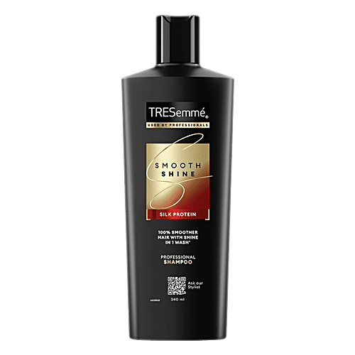 Dreaming of that salon-smooth silky hair that is radiant with shine? Look no further than the TRESemme Smooth Shine regime. The 100% paraben-free formula delivers intense hydration for 100% smooth hair with shine in 1 wash*. Featuring a patented micro-moisture technology, it is designed to shield dry hair from damage. Infused with Vitamin H and silk protein, the shampoo supports hair health while moisturising and enhancing hair elasticity. Its paraben-free formula and advanced smoothing system manages frizz and flyaways, leaving your hair effortlessly detangled and tamed. Recommended by professionals, TRESemmé Smooth Shine Shampoo for smooth hair is expertly crafted for smoother and shinier hair, suitable for all hair types and compatible with oil treatments. Follow with TRESemmé Smooth Shine Conditioner for locks that are healthier and beautifully radiant. Say hello to a frizz-free look with TRESemmé Smooth Shine. How to use: Apply shampoo to wet hair, gently massaging it into a lather. Rinse hair thoroughly. For best results, follow with the Smooth Shine Conditioner each time. Your stylist, now at your fingertips. Scan the QR code on the front of the pack to get expert haircare tips for that effortlessly smooth and shiny hair every day. *based on lab test vs non-conditioning shampoo About TRESemme: For 70 years, TRESemmé has helped women express themselves confidently as they make their mark on the world. From our origins in salons, TRESemme has been driven by a simple truth: every woman deserves to look and feel fabulous, like they've just stepped out of the salon. TRESemmé is dedicated to creating hair care and styling products that are salon quality without the salon price. Salon inspired and tested products that help you create your own style and experience that salon feeling every day. TRESemmé promotes the values of independence, self-reliance, and most importantly, the confidence you need to step up and meet the next challenge. We understand the power of hair to boost your confidence, which is why we believe in empowering modern women everywhere to lead the way.