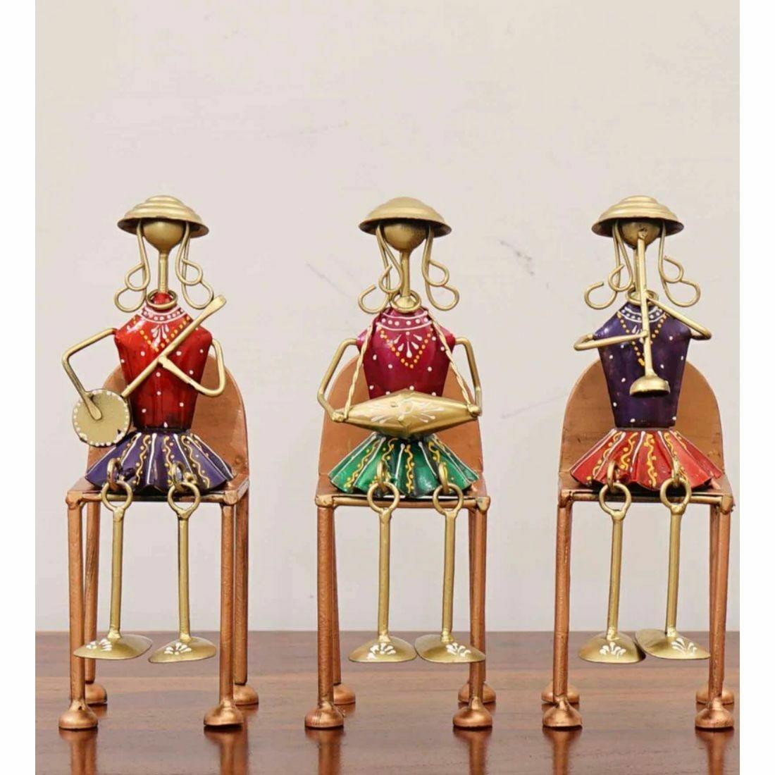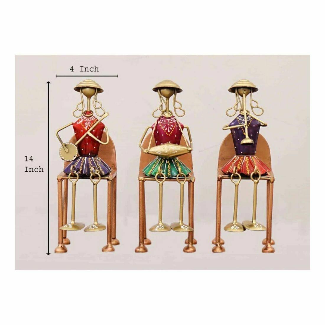 Trinity Craft Iron Multicolour Chair Lady Sitting Musician Set Of 3 Handmade Decorative Show Pieces for Home Decor & Showcase Items for Home Decoration & Table Decor (4x4x11) Inch