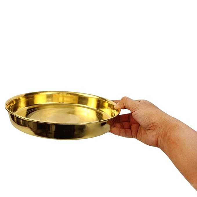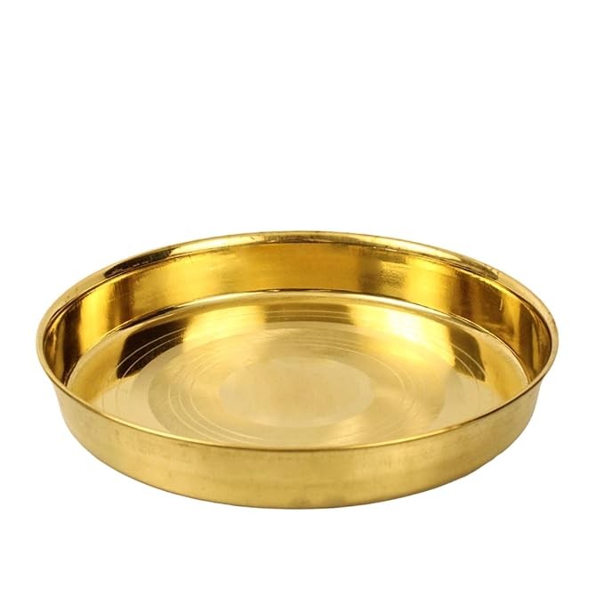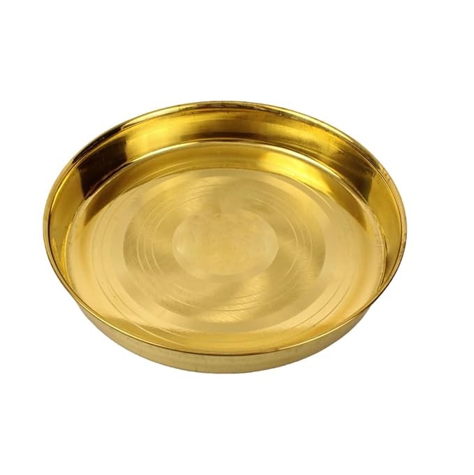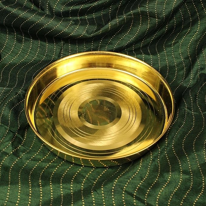 pure brass metal decorative pooja dish in fine finishing giving a sunshine look.In Hindu occasions like - Wedding , Engagement ,Diwali , Raksha Bandhan or in any rituals, Puja Thali maintains a very auspicious role as it is a part of every religious rituals.It can also kept in office or home for temple decorative purpose. So let buy this for up coming season. Clean by dry cloth and use pitambari powder specially for brass material. Brass Puja Thali with Flower Emossed Design,Brass Pooja Plate for Home & Office Decoration & Gifting.