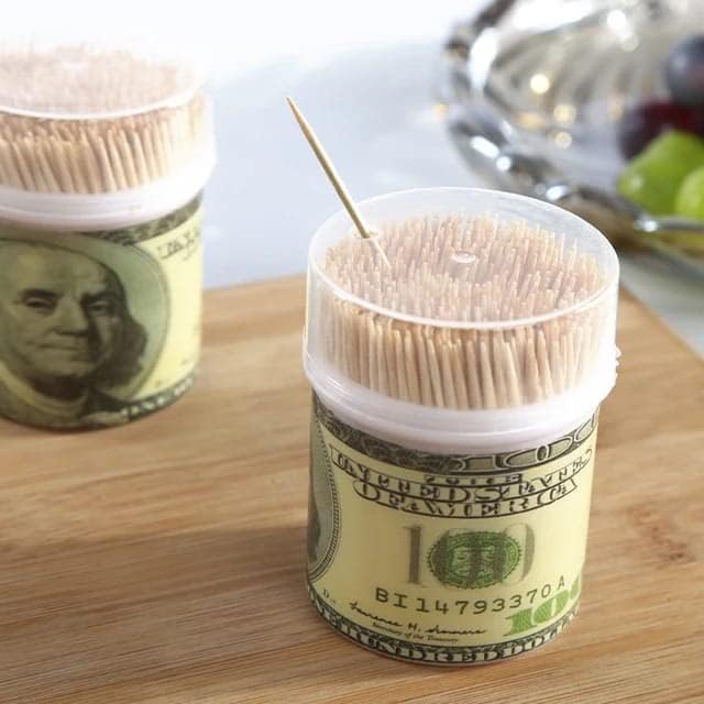 Wooden toothpicks round toothpicks in a clear plastic storage box | Sturdy double-sided safe for parties, appetizers, olives, BBQ, fruits, toothpicks. (100 Pcs)