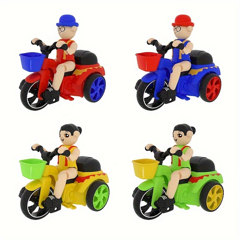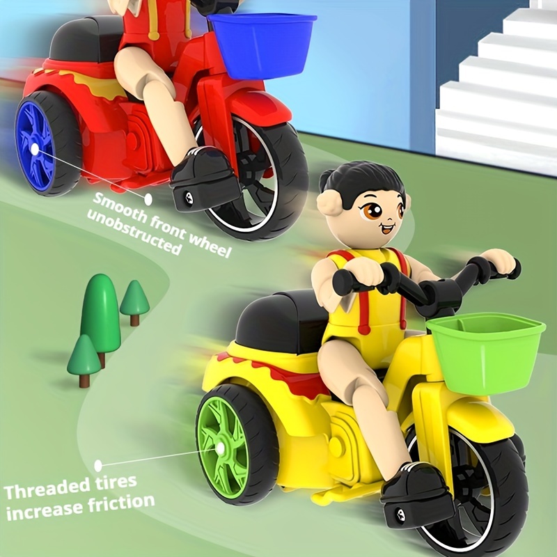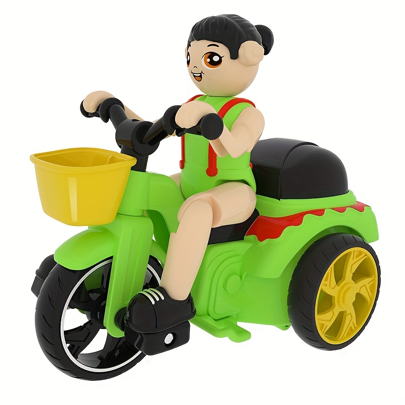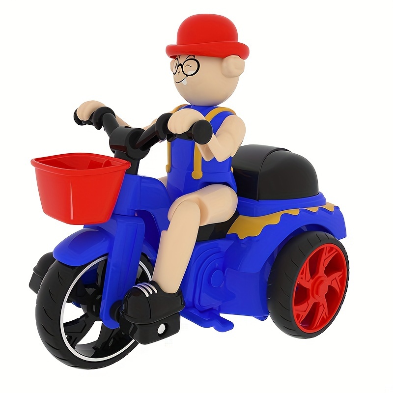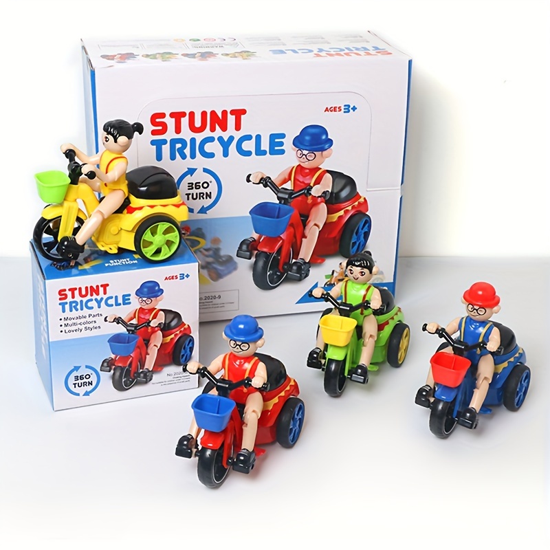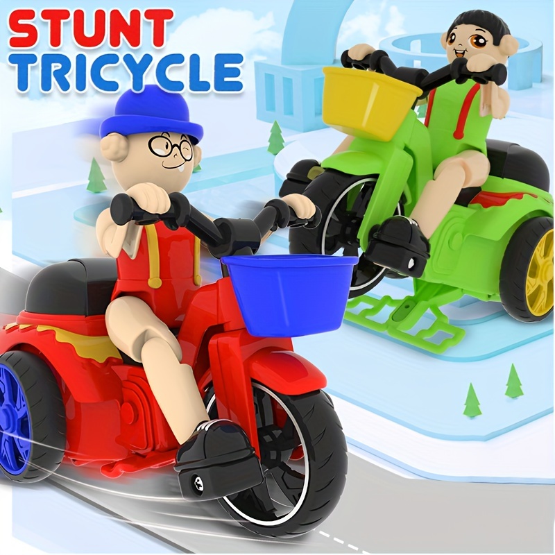 Youngsters' 360-Degree Rotating Stunt Tricycle - Fun Cartoon Motorcycle Toy, Durable Plastic Construction