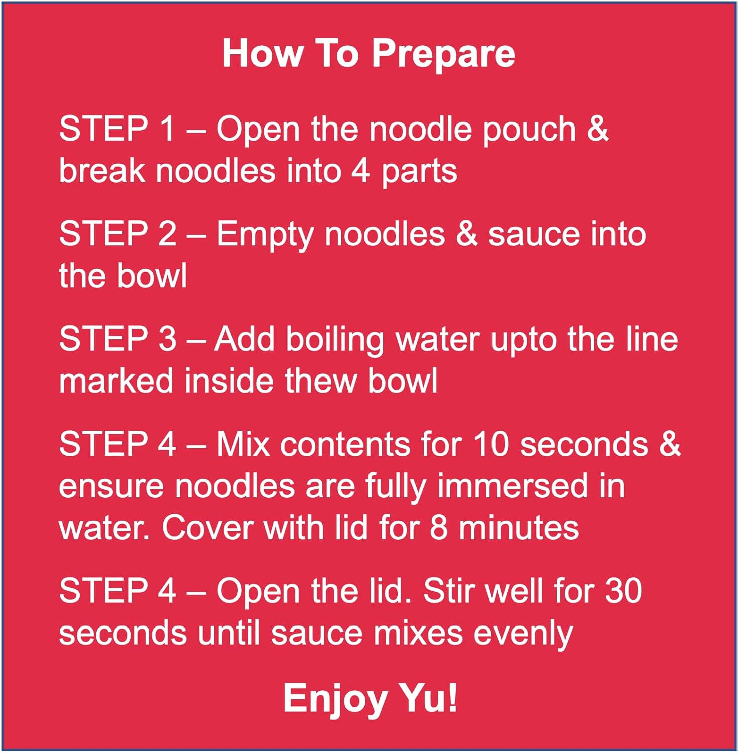 Instant Noodles that contain real chicken pieces? Yu makes it possible – our chef curated authentic butter chicken gravy combines so well with the tender chicken and noodles that you will think you are eating from a fine dining restaurant - isn't that exciting? These wholesome noodles contain frehest chicken, cream, tomatoes, onions, garlic and chicken stock. To top that, our noodle bowls are preservative and artificial ingredient free! Made using 100% natural ingredients, our ready to eat cup noodles require only 8 minutes to prepare by simply adding hot water. Go ahead – grab the finest fusion non veg noodle bowl in the market – Yu will simply fall in LOVE